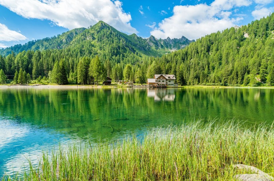 We cross lush meadows and wind through pine and larch forests before reaching Lake Malghette, a tranquil gem in the Presanella Group. Here, at the charming Malghette Refuge, you can relax and admire the Brenta peaks reflected in the water. We descend via Malga Zeledria before returning to town.