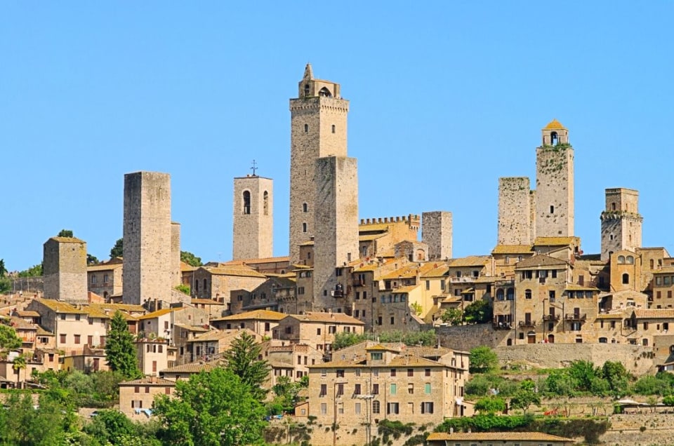 In the afternoon you will move on to San Gimignano. The town is known as the 'Town of Fine Towers' and it sits on a hilltop. A UNESCO World Heritage Site, it is encircled in walls and is famous for its medieval architecture and impressive skyline. We recommend you try the local white wine, Vernaccia di San Gimignano, made from grapes grown on the sandstone hillsides of the area.