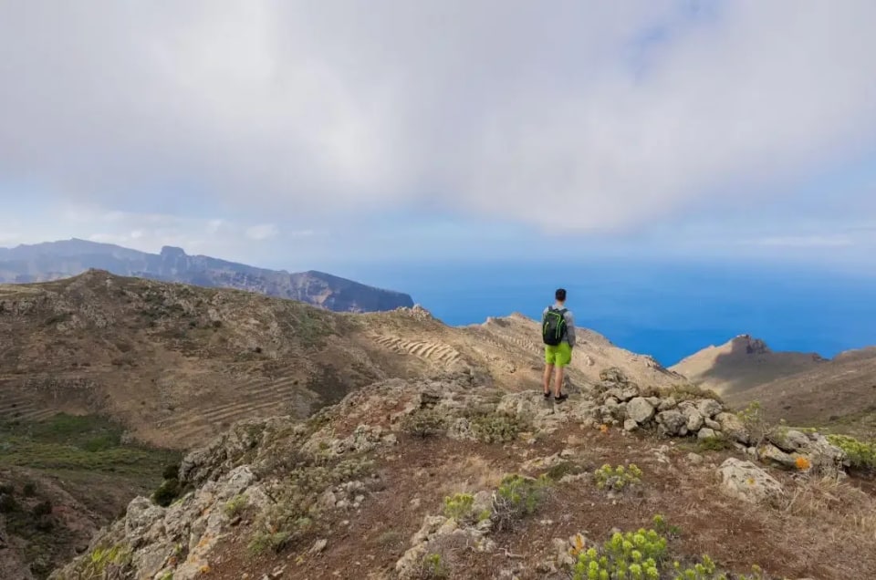 Our trek begins with an invigorating uphill climb through the lush laurel forest, where glimpses of the Atlantic Ocean peek through the trees. This scenic ascent leads us to the charming town of Teno Alto, renowned for its delicious cheese. From Teno Alto, let's continue our climb, with panoramic views unfolding over the verdant valleys below. As we reach the top, we can start to see views of La Gomera before continuing along the Sendero de Baracan ridge, offering spectacular vistas as far as the eye can see as we hike along the edge of the mountain. Our adventure concludes with a descent into El Palmar, navigating a rocky path through picturesque fields before returning to our starting point.