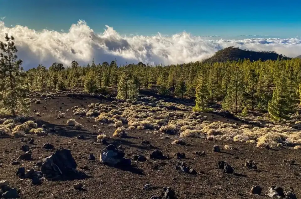 Our adventure continues as we delve more into the volcanic landscapes that Tenerife is famous for, as today’s trail leads us to the crater of Samara. We’ll hike through lava flows and take in impressive panoramic views of several volcanic cones, including Teide and Pico Viejo. This trail also offers views of the lush Canarian pine forest, thriving amidst the recently active volcanic terrain. The ground along the trail is composed of dark tephra (lapilli and scoria), creating a striking lunar landscape. Our hike concludes at the Boca Tauce lookout, offering breathtaking vistas before we return to our starting point.